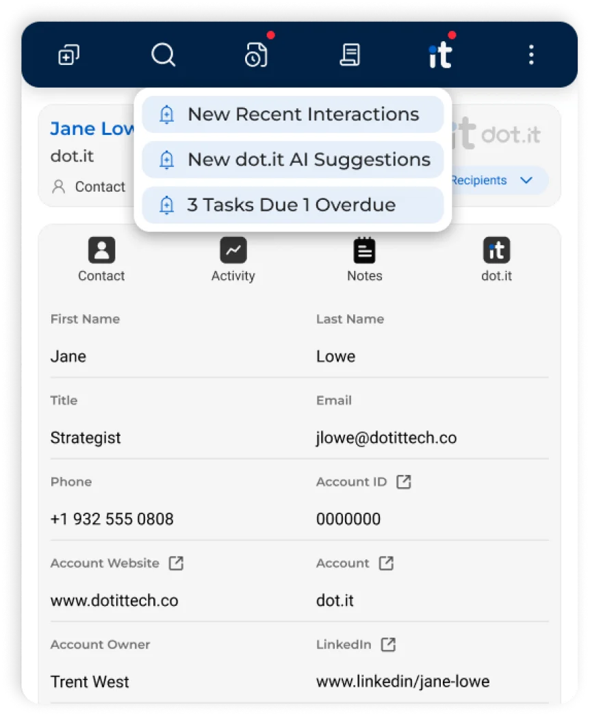 Designed for the entire revenue team, dot.it understands your pipeline and delivers insights for consistent engagement.