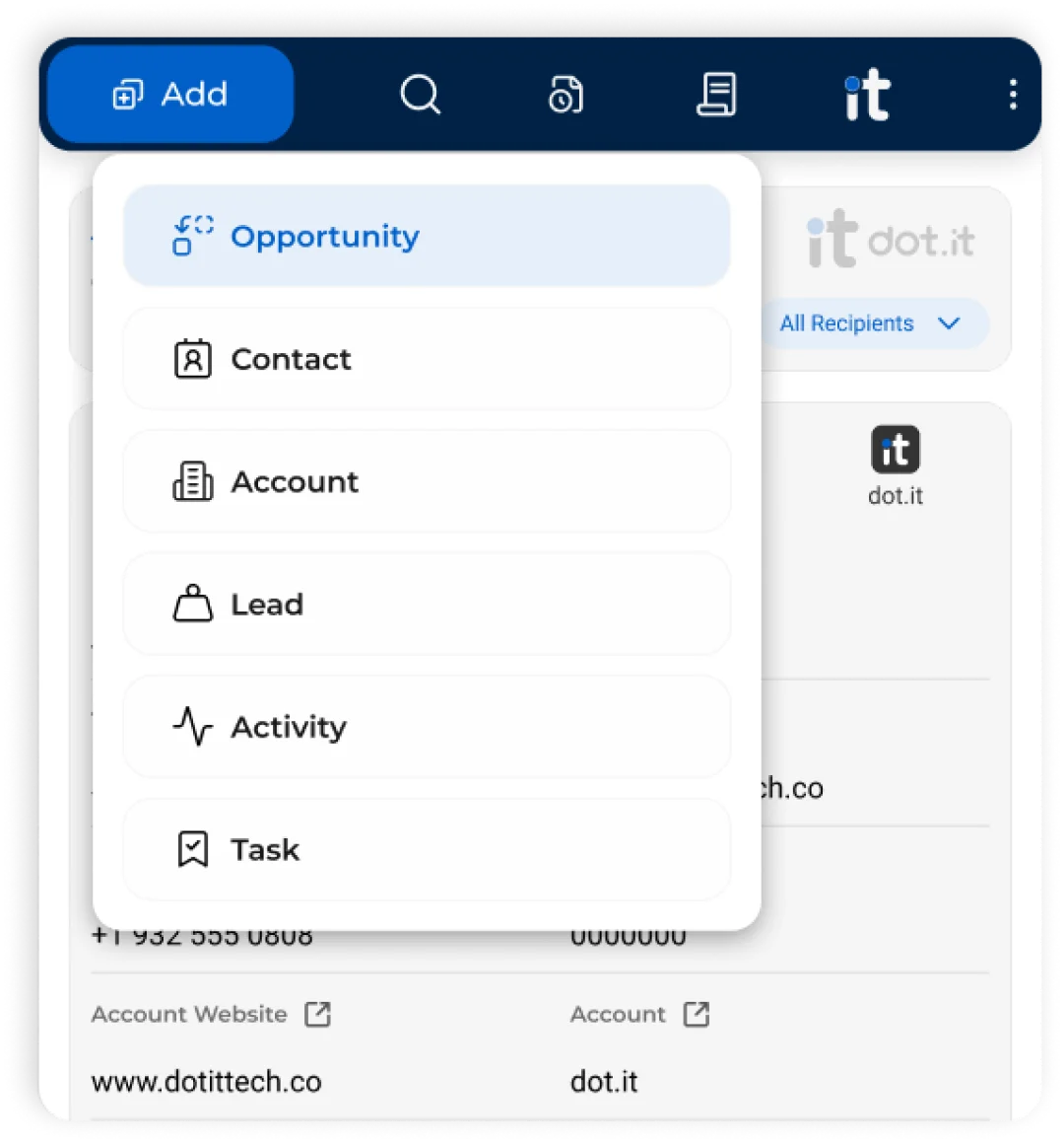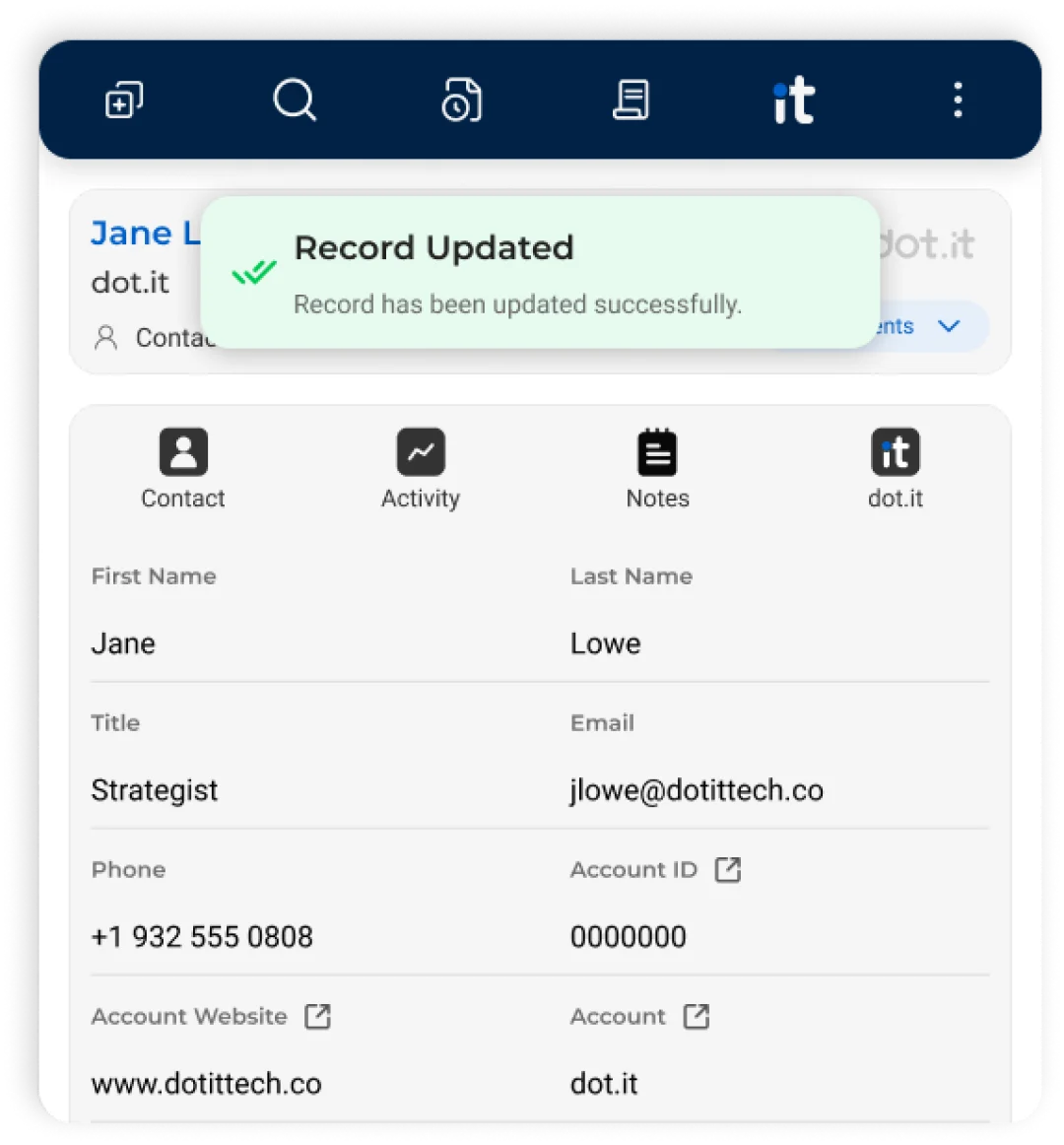 Integrate dot.it seamlessly with any CRM system you’re currently using. Gain unparalleled flexibility by eliminating the need to switch or adapt to new platforms.